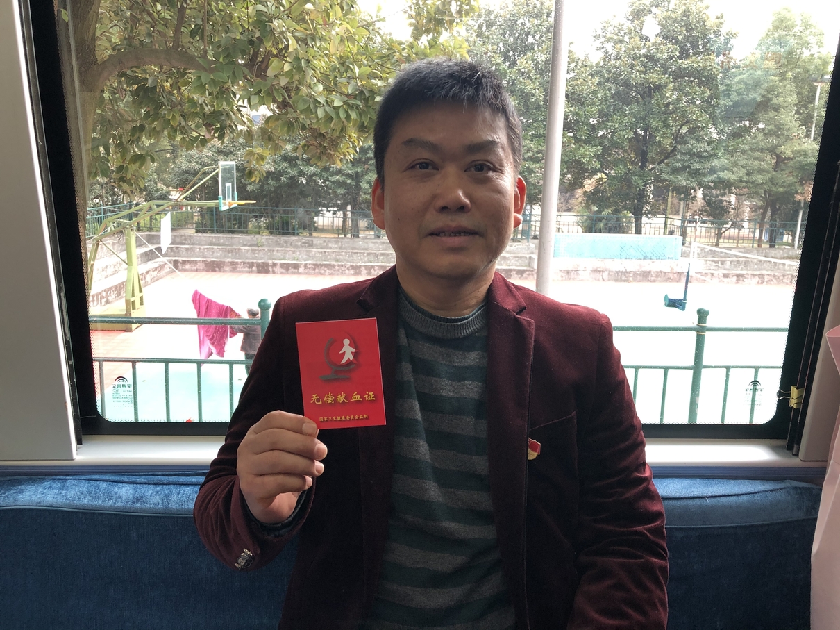 (郴州自来水公司党群办主任周宏第18次参加献血)