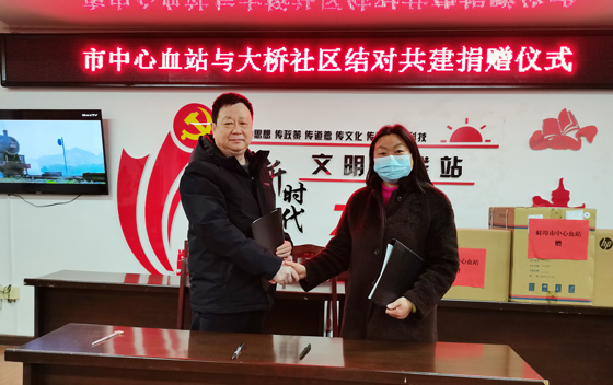 为保持共驻共建长效机制,双方党组织负责人签订了共建协议。根据大桥社区服务中心的要求,市中心血站为该社区赠送惠普台式电脑1台、口罩2千只,以帮助解决社区志愿者在疫情防控期间办公和防疫的实际问题。