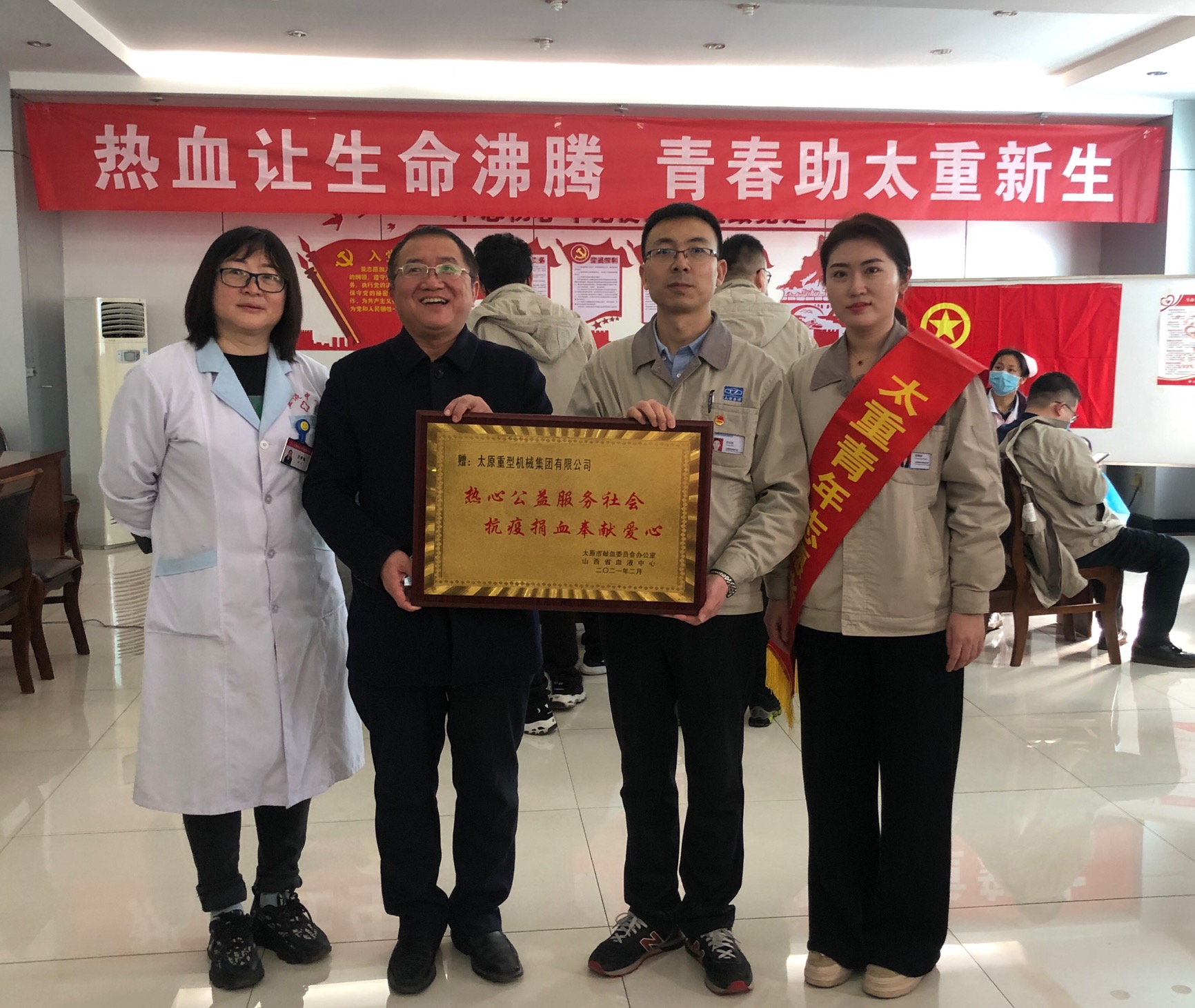 2月7日,太原重型机械集团有限公司在得知血液库存紧缺后,积极联系山西省血液中心,开展“热血让生命沸腾 青春助太重新生”无偿献血献爱心活动。此次活动吸引了太重广大职工的踊跃参与,100余名职工参加了此次献血,自愿为社会奉献一份爱心。山西省血液中心主任白林赠予太重“热血公益服务社会,抗疫捐血奉献爱心”牌匾,以此感谢他们满腔热忱、乐于助人的奉献精神和以热血投身改革、以真情奉献社会的崇高思想品德。