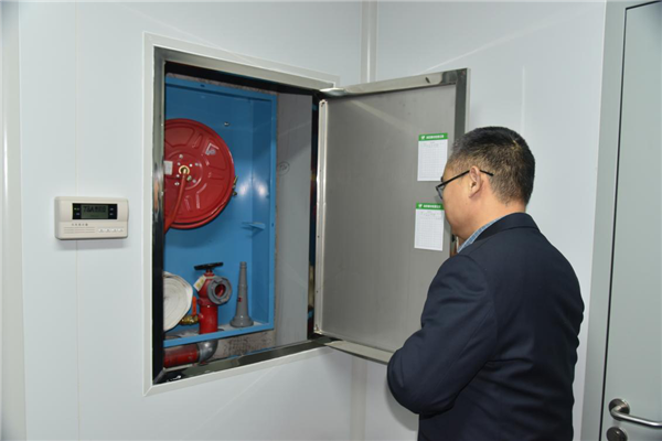 安全生产小组检查站内消防栓