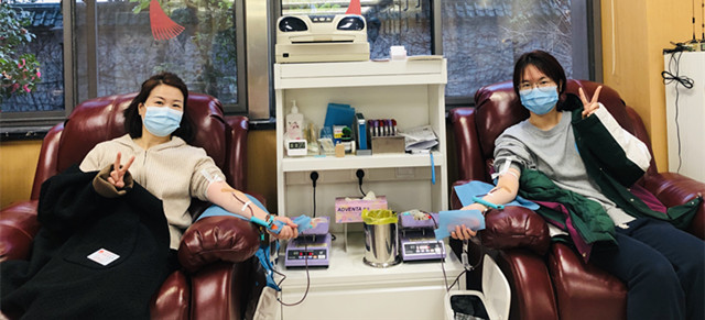“今天,我们这里预约了100多人,算是过年期间突破单日预约人数历史新高了,无偿献血者们真的好热情哦!”献血服务二科服务岗的吴莹莹感慨道。昨天,作为杭州本地人的邵静芳在群里得知这一消息后,马上主动请缨加入今日的“战斗”,并得到了献血服务二科冯晴科长的同意。怀孕7个多月的顾沁楠和怀孕6个多月黄爱萍克服怀孕时的行动不便,坚守在岗,与大家“并肩作战”,圆满地完成了本日的血小板采集任务。