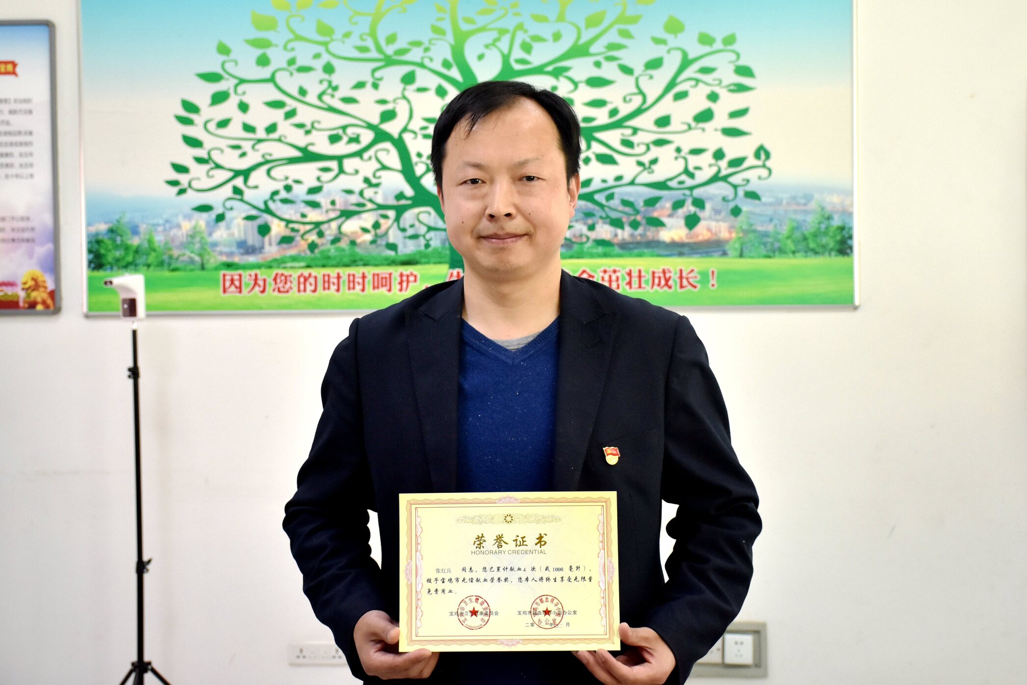 在他所从事的公益活动中,自然不会缺少无偿献血,开展志愿服务活动之余,他先后参加无偿献血4次,献血量1000毫升,荣获“宝鸡市无偿献血荣誉奖”,此外,他积极参与无偿献血宣传,通过“宝鸡上善公益”公众号平台多次转载发布无偿献血科普知识和献血者故事。张红兵坦言,今后有机会将继续参加无偿献血,也会利用联合会的影响力,去发动更多爱心朋友加入献血者队伍,挽救更多生命。