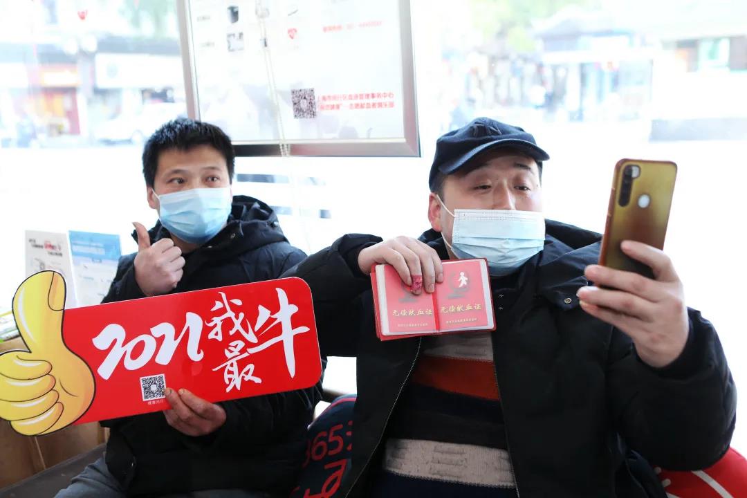 马更更、唐利雪是一对年轻爱侣,到七宝老街游玩时看到爱心献血屋,俩人毫不犹豫地伸出臂膀分别献血400ml,一起见证了双方的人生首次爱心历程。有过5次献血经历的程欣也来到“全国最智献血点”七宝爱心献血屋再次献出热血。家住吴泾的王红梅路过停靠在永德路步行街的“帮帮蜂”献血车时也慷慨地献血400ml。参加献血的还有李俊、龙玉辉、陈嘉怡、邢亮亮等爱心人士,大家没有豪言壮语,只希望用献血救人的方式在新年第一天留下特殊的纪念。