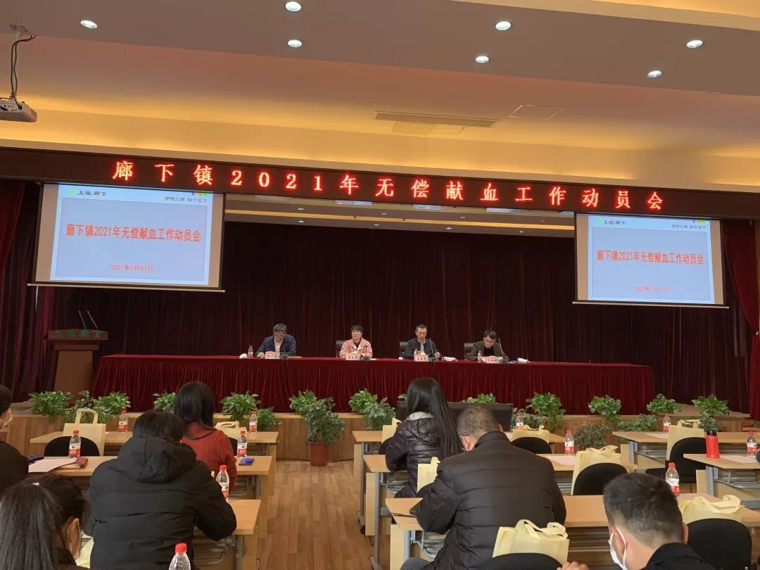 为确保春节前期临床用血紧张,疫情期间团体无献血活动的顺利开展,廊下镇于2021年1月21日召开无偿献血工作动员大会,积极部署下一阶段的无偿献血工作。会议有来自辖区内村、居委会和各企事业单位无偿献血工作负责人90余人参加。
