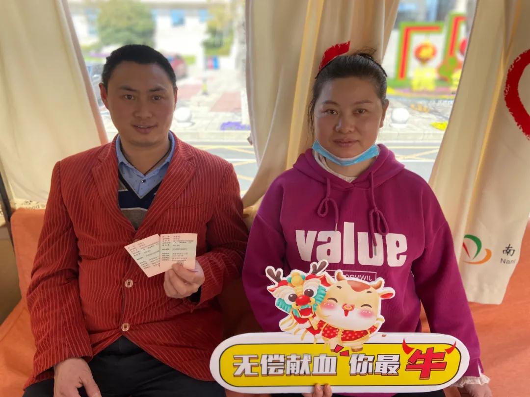 李斌文和李紫青是一对夫妻,只是路过看到献血车就停下了他们的脚步,两人纷纷献了400毫升,因为疫情他们今年留在了南昌过年,他们两人的孩子刚满十八周岁,李紫青说,也算是给小孩做了个榜样。