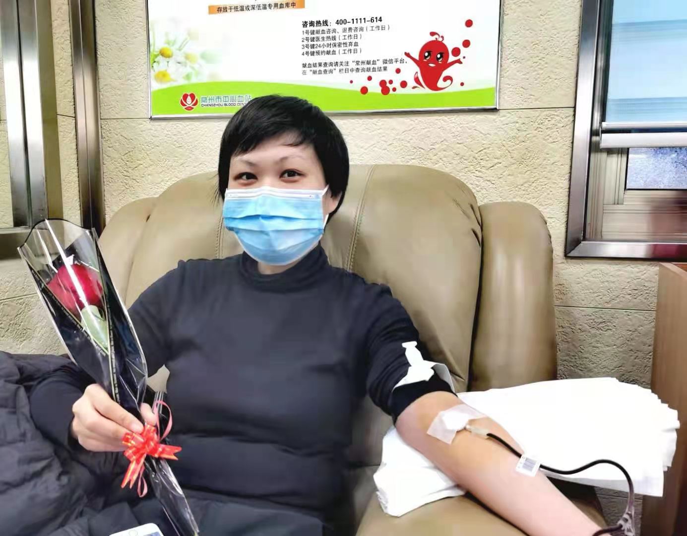 今年春节,是朱子君女士第二次参加献血,回想起首次献血,朱子君印象十分深刻,去年2月,在疫情防控最严峻的时期,她冒着风险,勇敢走出家门,伸出手臂,捐献热血,赠予寒冬中最有温度的礼物,而今春暖花开时,她再次走进献血屋,将爱延续。
