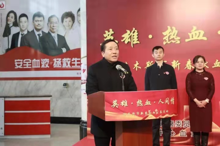 郭雪梅副市长宣布佳木斯市“英雄·热血·人间情”新春无偿献血公益活动正式启动。