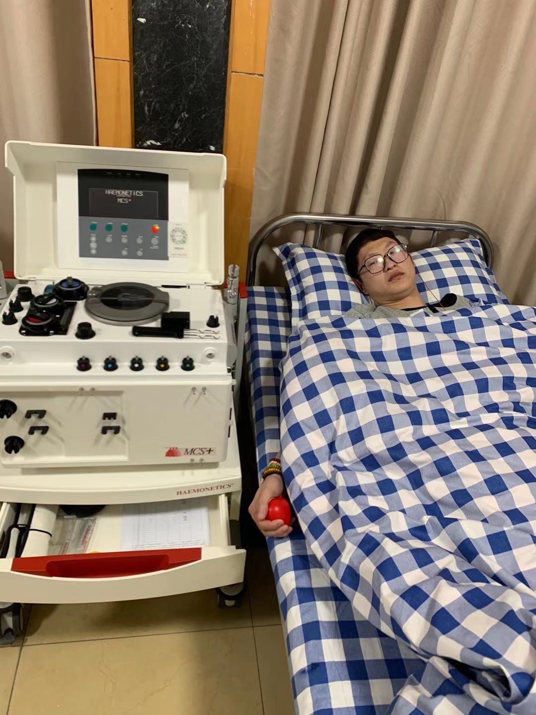 2月22日(农历正月十一),华东理工大学大三学生许逸凡在父亲许明的陪同下来到宜春市中心血站捐献机采血小板,奉献属于他的爱心。