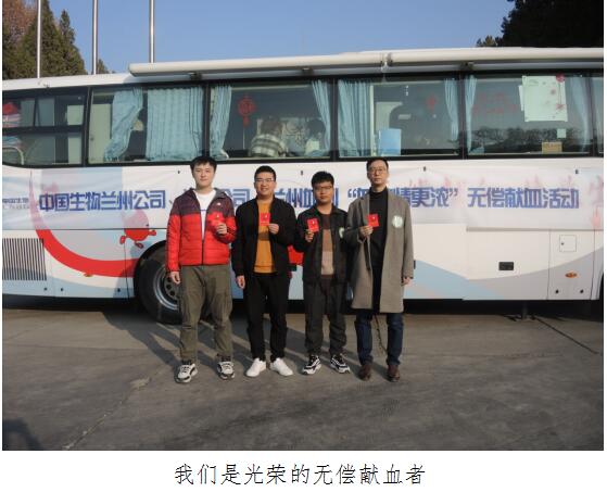 2月26日,中国生物兰州生物制品研究所、兰开公司、兰州血制公司联合组织了“血浓情更浓”无偿献血活动,今天恰逢正月十五元宵佳节,志愿者们通过献爱心的方式,度过传统佳节,在辛丑牛年的早春,播下爱心的种子。