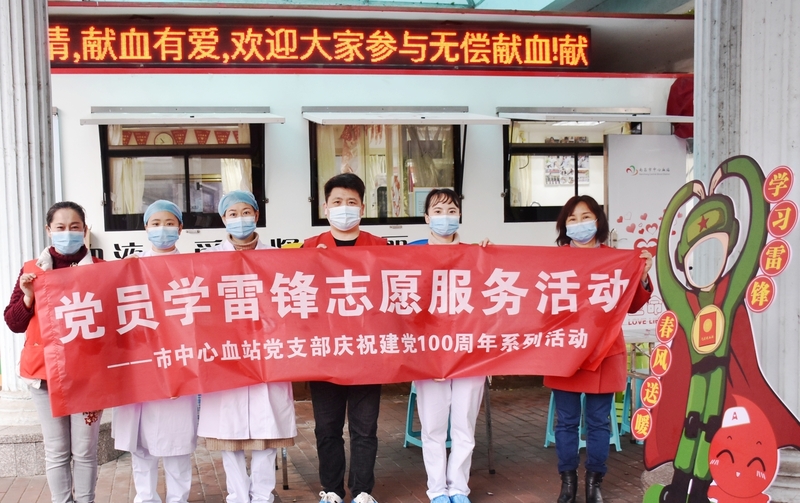 在“3·5”学雷锋纪念日来临之际,为弘扬雷锋精神,南昌市中心血站党员干部志愿者组织开展了党员学雷锋志愿服务者活动。3月5日早晨起,南昌市区暴雨不断,雨景中,南昌市中心血站的党员志愿者们与工作人员一起,在中山路百花州献血点,现场为市民提供免费测血压、验血型等便民志愿服务。同时党员志愿者们还向过往群众分发无偿献血宣传知识手册,进行献血咨询服务,解答群众提出的各种献血过程中存在的疑问。