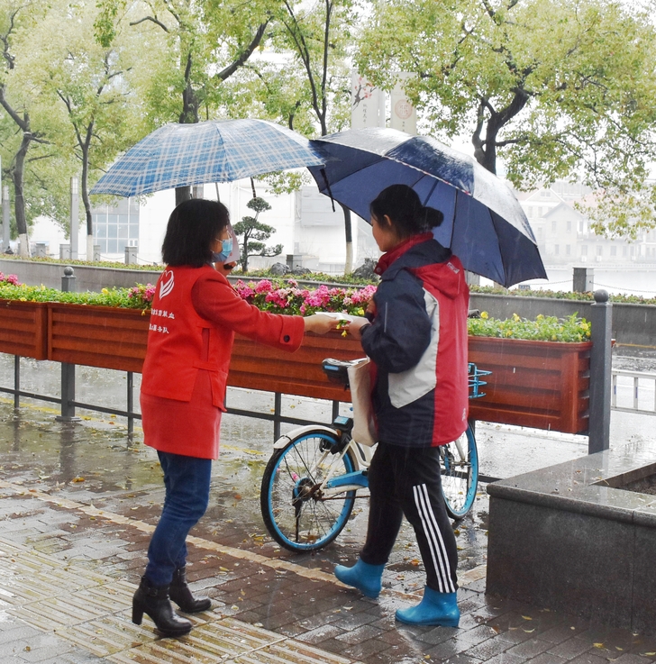 大雨丝毫没有阻挡党员志愿者们的脚步,大家纷纷撑起了伞,拿起宣传单穿梭在行人之中。经过大家的不懈努力,在行人偏少的大雨中,有不少市民都驻足了解无偿献血知识,并尝试了人生的首次献血。
