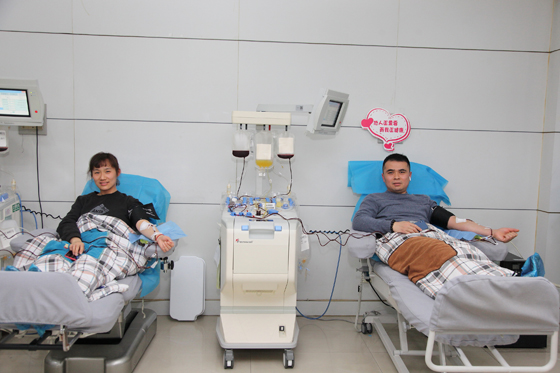 在学雷锋纪念日当天,蚌埠市三院输血科主任顾标、中药科余恒跃夫妻二人一同来到蚌埠市中心血站机采科,捐献血小板。