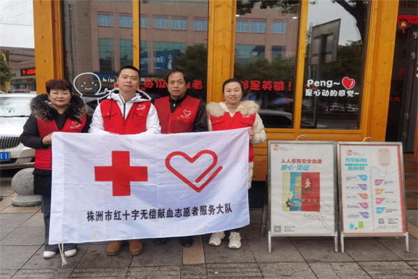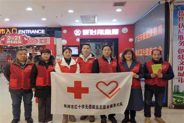 2月23日,株洲市红十字无偿献血志愿者服务大队政委周美生、办公主任梁梅清,志愿者卜爱香、芦水香、王除初、刘利珍、吕晓玲、沈克羊、夏翼民9名同志来到渌口爱心献血屋开展无偿献血宣传活动。