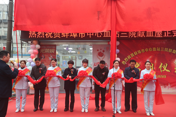 3月9日上午,蚌埠市中心血站三院献血屋正式启用。蚌埠市卫健委党委委员、副主任李剑、蚌埠市红十字会专职副会长孙林、蚌埠市第三人民医院党委书记郭政新、党委副书记、院长余汉峰等领导出席启用仪式并剪彩。蚌埠市中心血站党支部书记、站长董柱主持启用仪式。