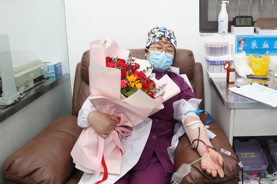 启用仪式结束后,市三院妇产科护士长闫华率先走进献血屋,今天是她第四次参加无偿献血,她表示捐献血液可以帮助到其他人,并且家人都很支持,以后还会继续参加无偿献血。