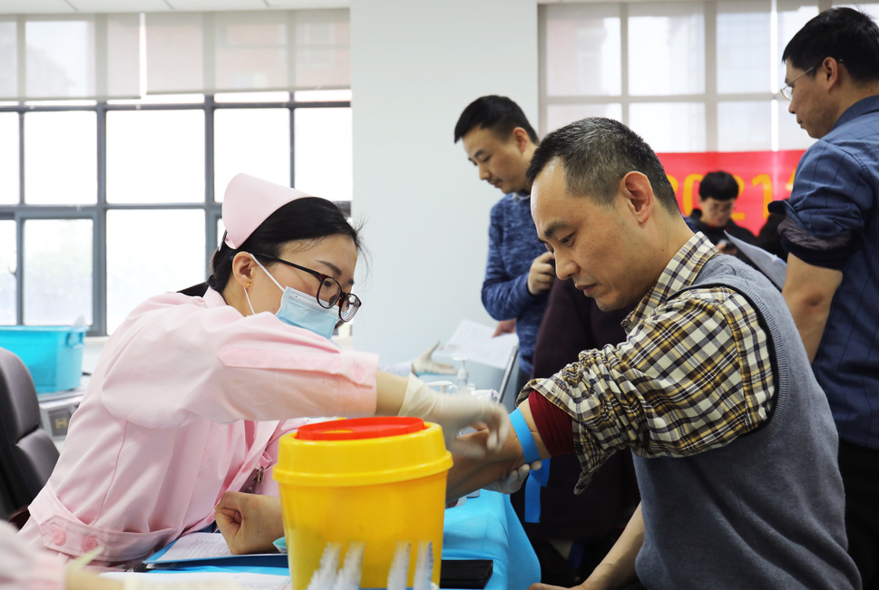 早上7点开始,前来献血的爱心志愿者依次开始填表、体检、化验、献血。在献血队伍中,有提前来到等候献血的志愿者,有从工作岗位上挤出时间献血后又匆忙返回工作岗位的干部职工,有多次献血的老朋友,有首次献血的新朋友,有党员、志愿者……
