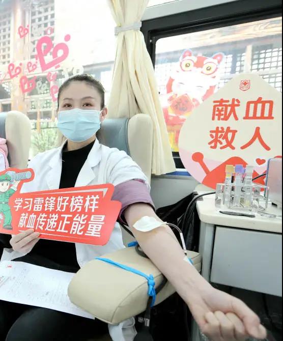 四病区的护士郑璐第一个伸出手臂献出热血,第3次无偿献血的她说:“学雷锋纪念日到了,要像雷锋那样做一个好人。”