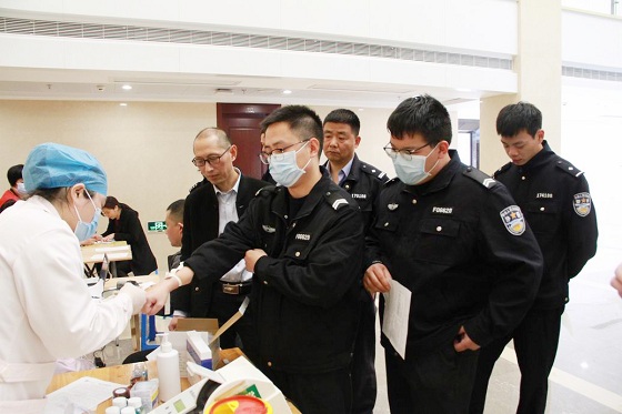 3月15日,台州市公安局椒江分局组织开展无偿献血活动,广大民警、辅警在工作任务较重的情况下,仍积极报名、踊跃参加,带头参与社会公益事业,弘扬传播社会正能量。