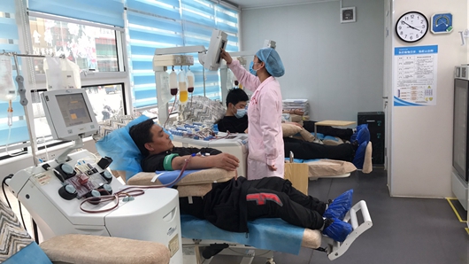 机采室的工作人员笑着说:“不管几点完成当天的采集任务,只要能保质保量的完成任务,为临床提供安全足量的血小板,让献血者满意,我们就不觉得辛苦。”
