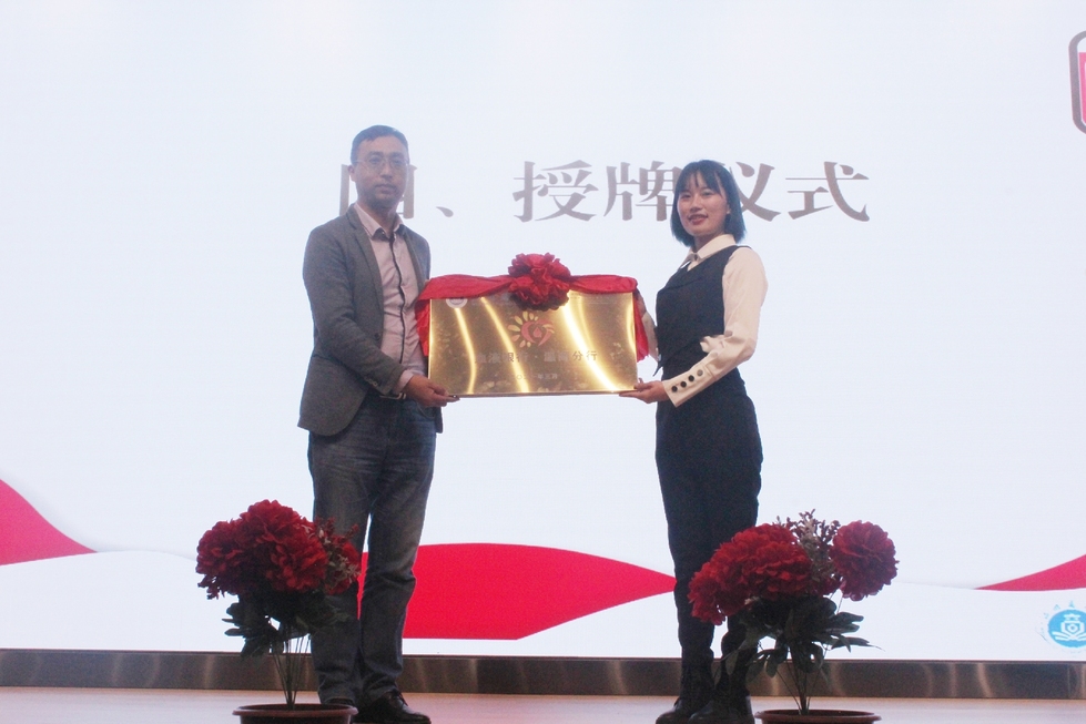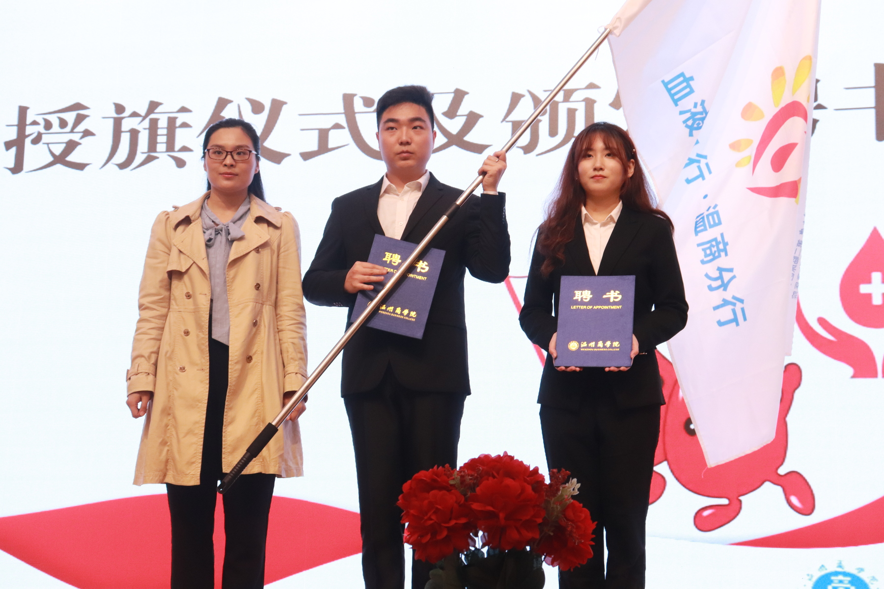 随后,由温州医科大学第二临床医学院团委书记苏凤启为温商分行授旗并颁发聘书。