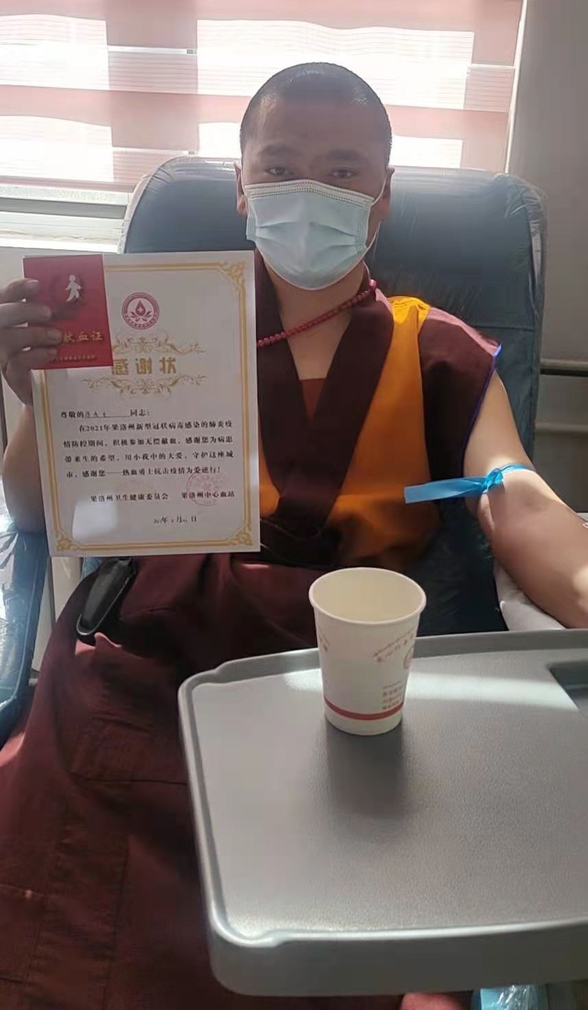 有这么一群人,他们或胸戴党徽,或肩扛国徽,或身披袈裟,或衣着藏袍,他们从不同的岗位不同的地方来,却怀揣同一个心愿:奉献热血,拯救生命,用热血点亮玛域果洛!近期,果洛州新冠疫苗接种正在如火如荼的进行着,由于接种疫苗后至少42至56天内不能献血,使大部分无偿献血志愿者以及很多爱心人士因已接种疫苗无法献血,果洛州中心血站血液库存处于警戒线边缘,为缓解全州临床用血紧张现状,政府工作人员、武警官兵、特警战士、寺院僧尼和广大可爱的牧民群众在接到果洛州中心血站血源室工作人员电话后,只要自己符合已接种新冠疫苗满56天条件者,都积极主动来到血站奉献爱心,慷慨献血,用热血温暖他人,希望帮到在生命线上垂危挣扎的病人们。通过几天的努力,有30位爱心人士主动投身献血事业,共采集血液10200毫升,及时扭转了果洛州中心血站血库紧张现状,有效的保障了医院血液供应。