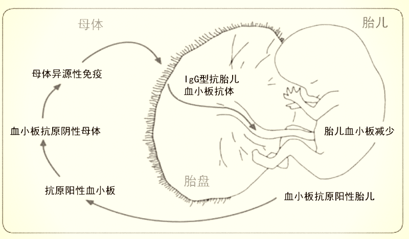 血小板抗体不会天然产生,主要在妊娠、输血免疫等因素刺激下产生。已有研究报道胎母红细胞血型抗体不合是导致晚期习惯性流产的重要原因之一,而胎母血小板血型抗原不合产生的血小板同种抗体是早期流产的主要原因,血小板同种抗体主要包括HLA抗体和HPA抗体。其中FAIT主要由HPA抗体介导,即HPA阴性的母亲因怀孕具有HPA阳性(从父亲处获得)的胎儿或输入HPA阳性的全血或血小板而被致敏。与本病最相关的血小板抗原主要是存在于血小板膜糖蛋白Ⅱb/Ⅲa上的HPA-1、HPA-2、HPA-3、HPA-4和HPA-5,其中HPA-1a的抗原性最强,人群中约2%-3%为阴性,一半以上的FNAIT与HPA-1a抗体相关,其次为HPA-5b抗体。