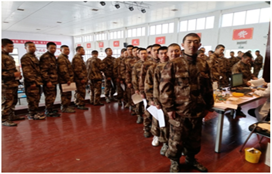 23日上午,陈洋新兵集合部综合楼前,新兵们排列成整齐的队伍,听着号令依次来到无偿献血车前,参加献血前的填表、体检和化验。所有检查符合要求后有秩序地上车献血。每位新兵的脸上洋溢着青春阳光的笑容,好像这就是一次离家前举行的快乐大聚会。短短一上午,共有66人成功献血,献血量达15800毫升。