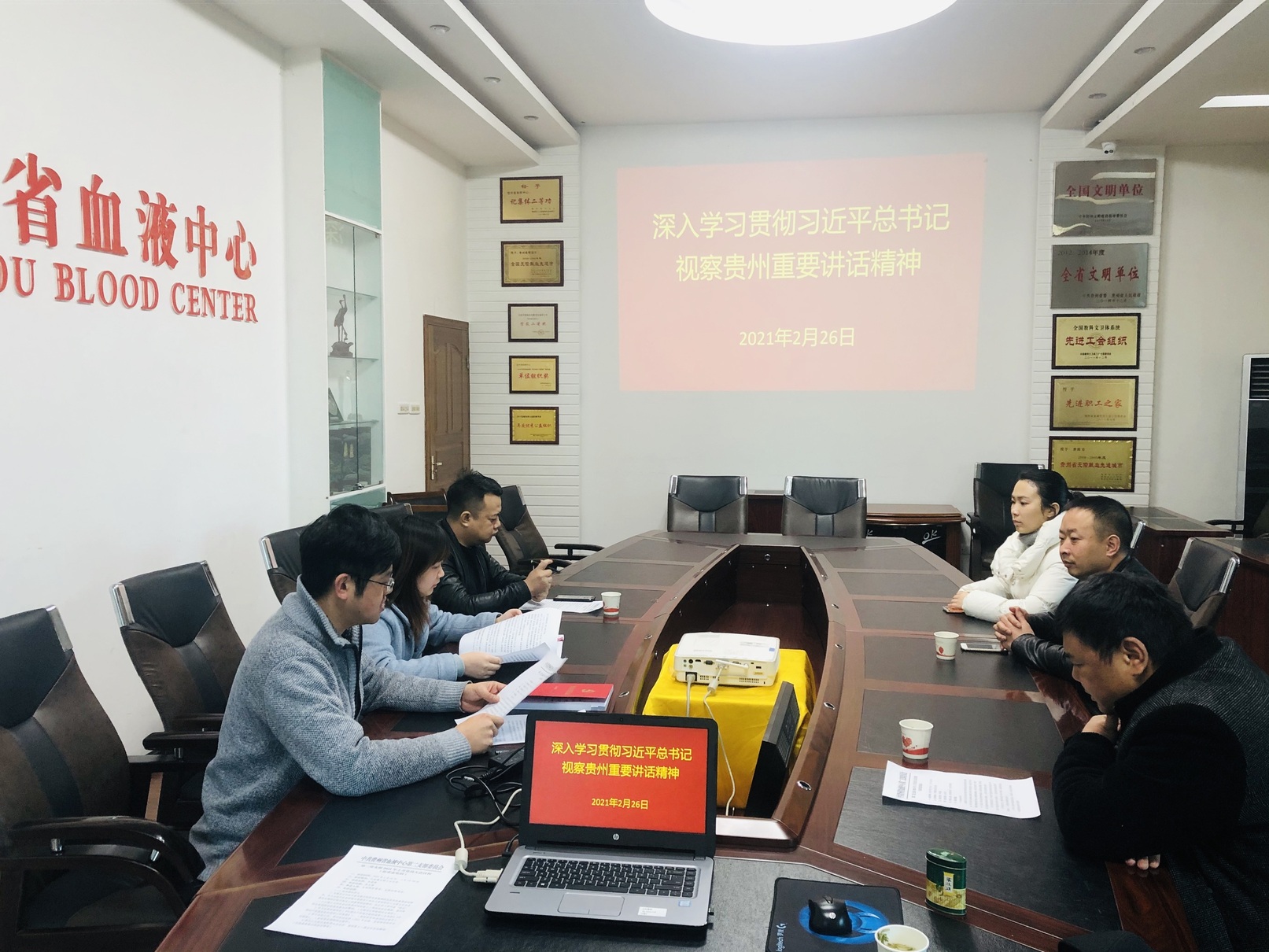 2月26日,第六党支部在组织党员认真学习领会习近平总书记视察贵州重要讲话精神时,表示要坚持以人民为中心的发展思想,坚决落实总书记要求,始终把人民群众生命安全和身体健康放在第一位,把血站的公益性原则贯穿在医疗服务工作中,以患者为中心,以服务为切入点,不断提高血液产品质量和服务质量,不忘初心,为人民健康保驾护航。