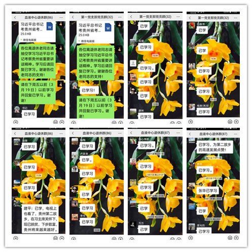 3月8日,在中心党员活动室,中心第一党支部(离退休党支部)联合贵阳爱尔眼科医院党支部开展主题党日活动。活动中,老党员、老同志们一起学习了习近平总书记视察贵州重要讲话精神。同时,还结合支部自身实际,采取在支部微信群推送学习资料等形式,供老党员们自学。学习后,老党员们表示,将牢记总书记殷切嘱托,时刻关注中国的发展,一如既往地关心和支持中心采供血事业的发展建设,为中心更好更快发展发挥余热。