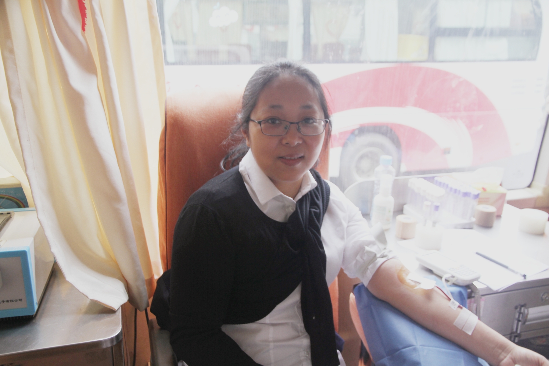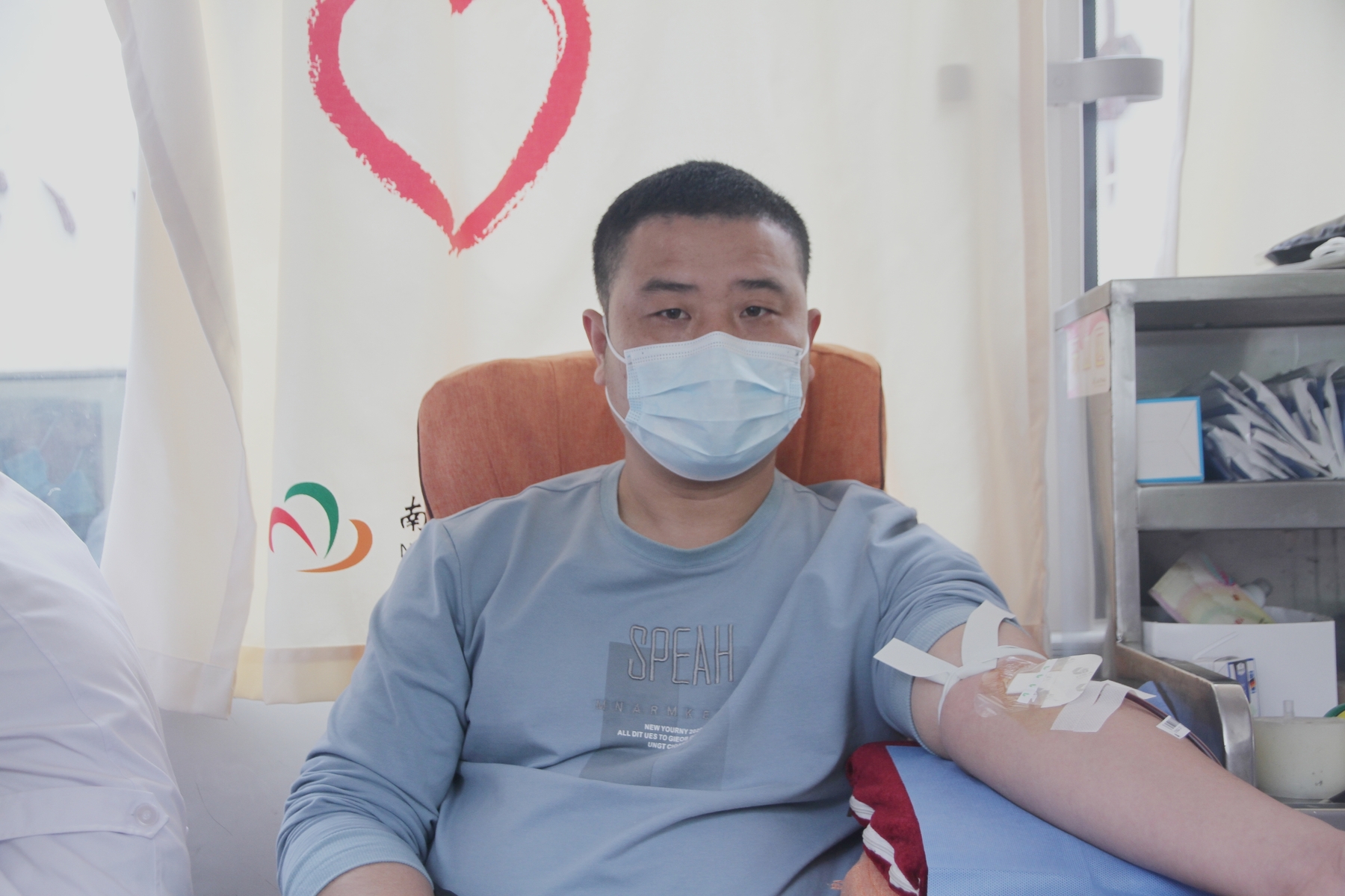 来自青山湖区城管局的曹文已经是献过四次血了,他说,以前在部队里和战友一起献,非常的自豪和光荣。