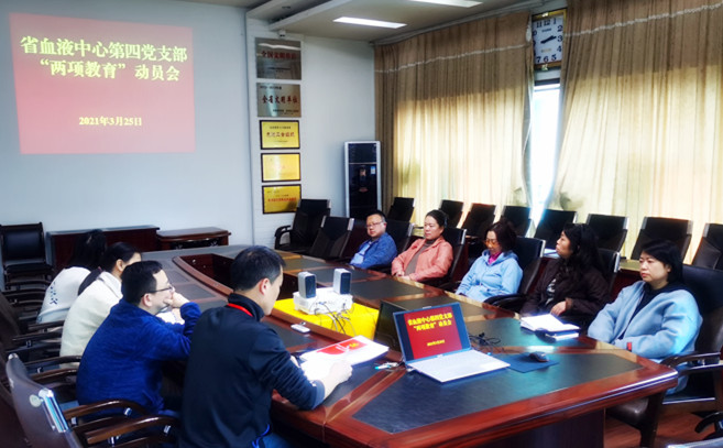 3月25日,省血液中心第四党支部组织召开党员大会,专题学习习近平在党史学习教育动员大会上的重要讲话精神,并结合中央、省委、省卫健委和中心党委要求,启动部署支部党史学习教育和“牢记殷切嘱托、忠诚干净担当、喜迎建党百年”专题教育工作(以下简称“两项教育”)。