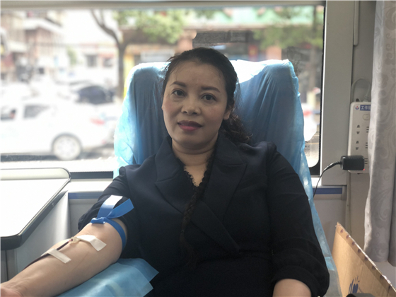 (中国邮政储蓄银行郴州分行计划财务部总经理颜艳第6次参加献血)