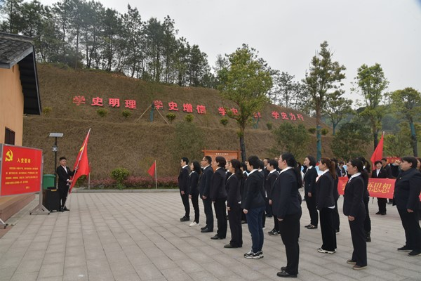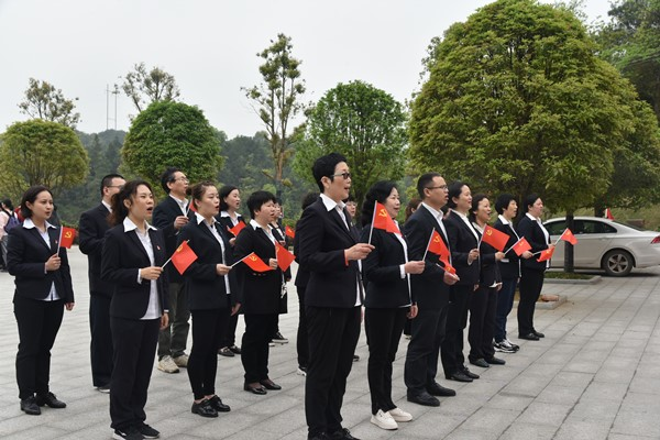 3月30日,在左家老屋前坪,面对鲜红党旗,市中心血站全体党员一起重温入党誓词并高唱《没有共产党就没有新中国》,铿锵有力的誓言和歌声催人奋进、激荡人心。