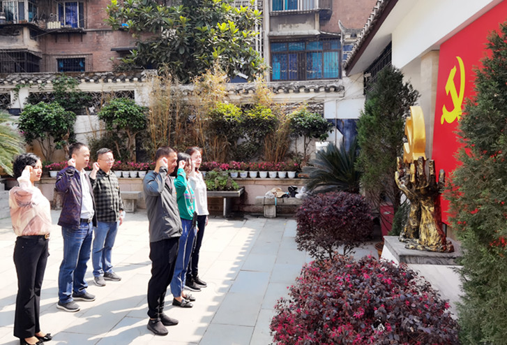 在省工委旧址纪念馆,支部党员同志面对党旗,进行庄严宣誓,并为当月三名党员同志过了一次有意义的“政治生日”,希望他们继续牢记党的宗旨,铭记誓言,增强党员意识,坚定理想信念,做好本职工作,发挥先锋模范作用。