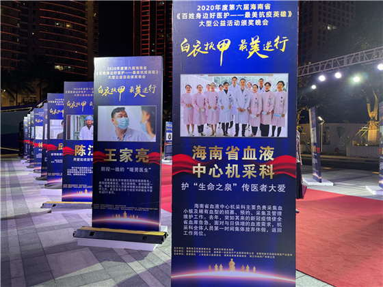 为展示抗疫医护人员的感人故事、奉献精神,第六届海南省百姓身边好医护——最美抗疫英雄大型公益活动,活动通过网络投票和专家评审,最终产生“最美抗疫英雄”12名、“抗疫优秀集体奖”10个、“特别贡献奖”10名及优秀提名奖人选13名。海南省血液中心机采科荣获“抗疫优秀集体奖”。
