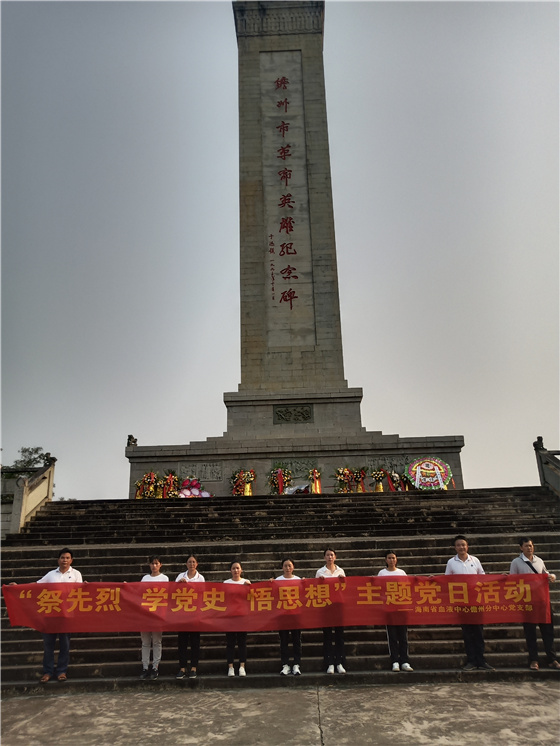同时,我中心三亚分中心党支部、儋州分中心党支部、琼海分中心党支部也分别在三亚西沙海战烈士陵园、琼海杨善集烈士陵园、儋州革命英雄纪念碑,开展“祭先烈 学党史 悟思想”主题党日活动。
