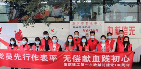 重庆建工八建公司联合重庆建工第一市政公司、重庆市血液中心,为庆祝建党100周年,助力“十四五”开好局,在公司楼下开展了志愿献血活动,掀起了一场无偿献血的爱心热潮。