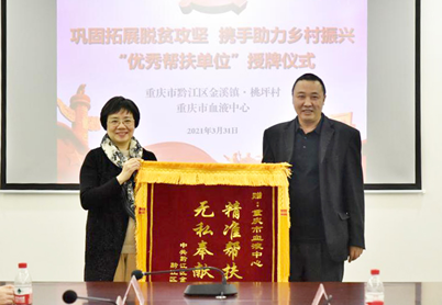 2021年3月31日下午,金溪镇纪委书记汪学威、桃坪村支部书记主任龚斌、黔江区编办综合科科长高飞、扶贫第一书记陈刚一行来到重庆市血液中心,向中心广大干部职工对金溪镇桃坪村脱贫攻坚工作所付出的努力表示感谢,同时赠送金溪镇党委政府授予市血液中心的“优秀帮扶单位”牌匾、村支两委代表村民赠送的旌旗。市血液中心党政在家领导予以了热烈欢迎,并就脱贫攻坚工作进行了座谈交流。