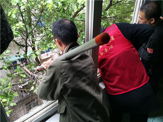 (支部党员帮助居民修建树枝)
