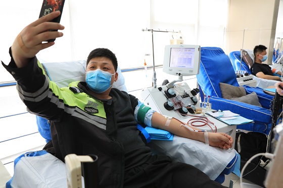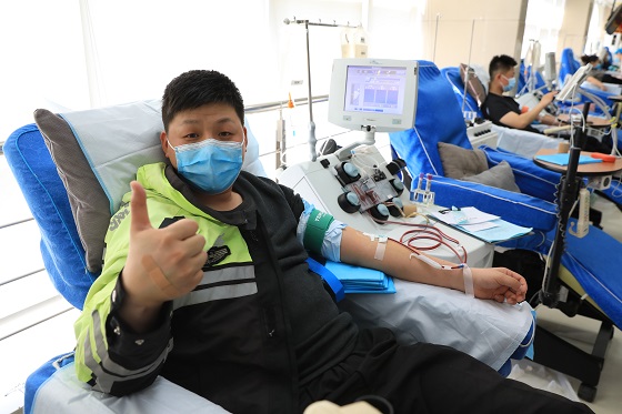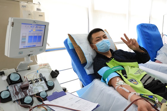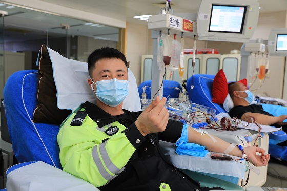 此次献血活动带队人员蔡彦虎,是正定县城区中队辅警组长。他2009年在部队第一次接触到献血,此后一直坚持参加献血,2015年退伍后来到交警队工作,偶然一次机会了解到成分献血,发现成分血在临床的需求量较大,献血间隔期也短,两周就可以献一次,于是决定尝试一下成分献血。