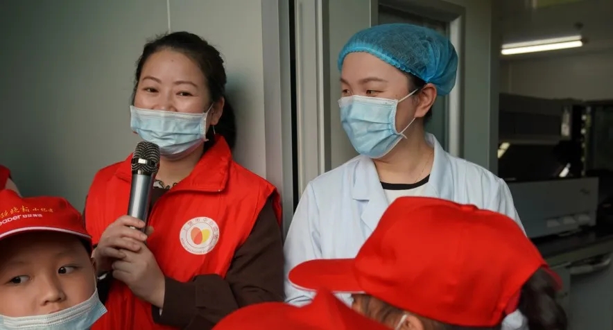 在检验科,中心血站讲解员朱金玉向小记者们介绍道:“采集回来的是全血,不是每一包血都能用,必须经过筛查、分离、处理以及储存,还要经过严格的检验,才能够进行使用,确保病人安全使用。”