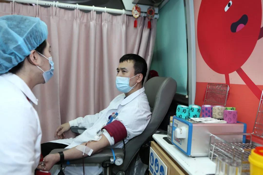 闻讯无偿献血活动后,有过两次无偿献血经历的门诊二联合党支部书记、康复科主任李小六和科室里的同事杜国君等一起赶来分别献出热血。医保办的曾远菲曾6次捐献热血,也趁工作间隙赶来再次献出热血。