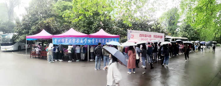 为保障贵阳地区临床用血,2021年4月6日-4月9日,贵州省血液中心、贵州师范大学求是学院联合开展为期4天的“百年奋斗路、热血铸青春”无偿献血活动。