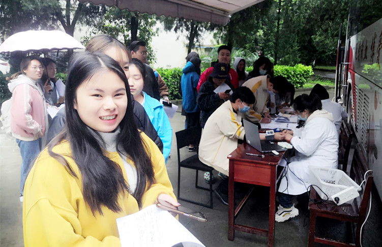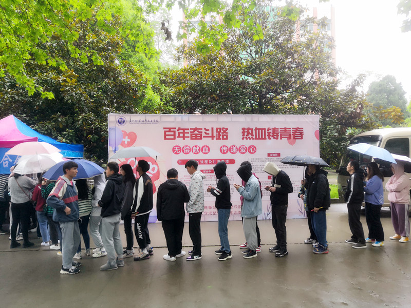 活动当天阴雨绵绵,省血液中心采血医护人员准时到达学校活动现场,阴霾的天气遮挡不住一张张洋溢着青春热情的脸庞,大家欢声笑语,献血队伍井然有序,填表、检验、献血……不知不觉中顺利完成采血工作。