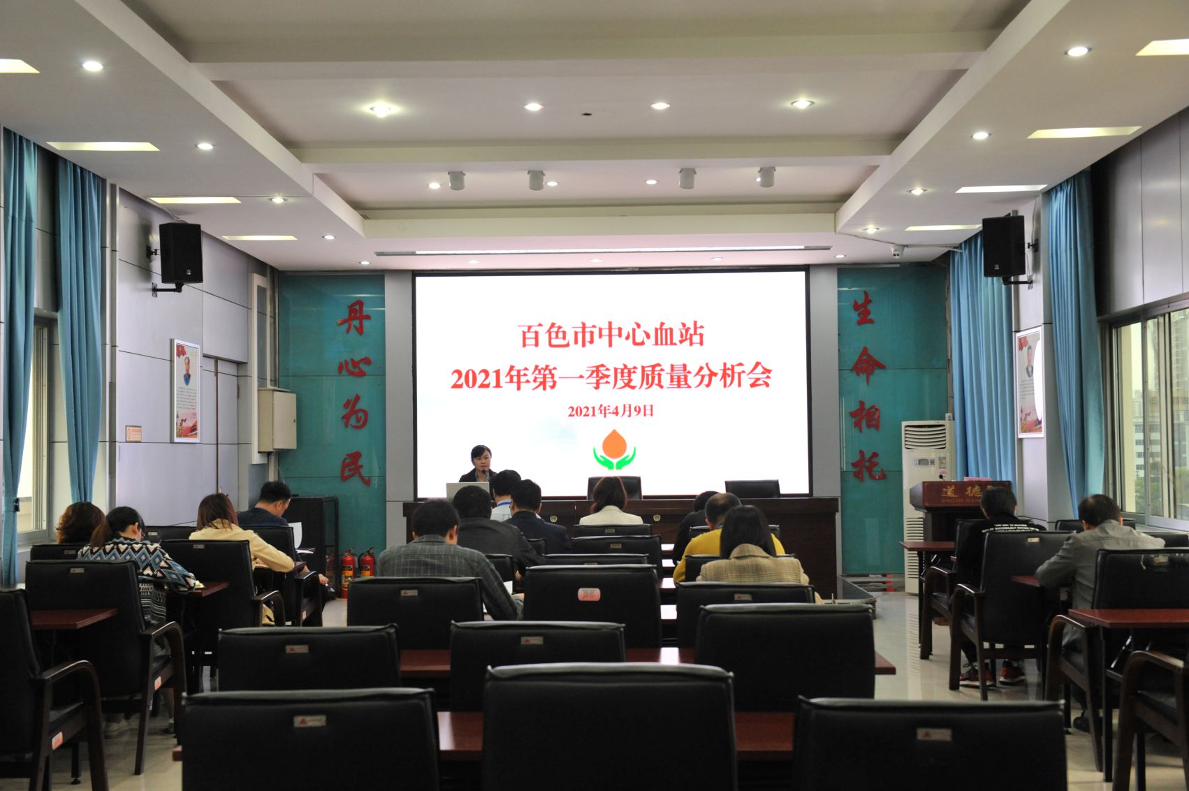 4月9日,百色市中心血站召开2021年第一季度质量分析会。站领导班子和各科室负责人参加会议。
