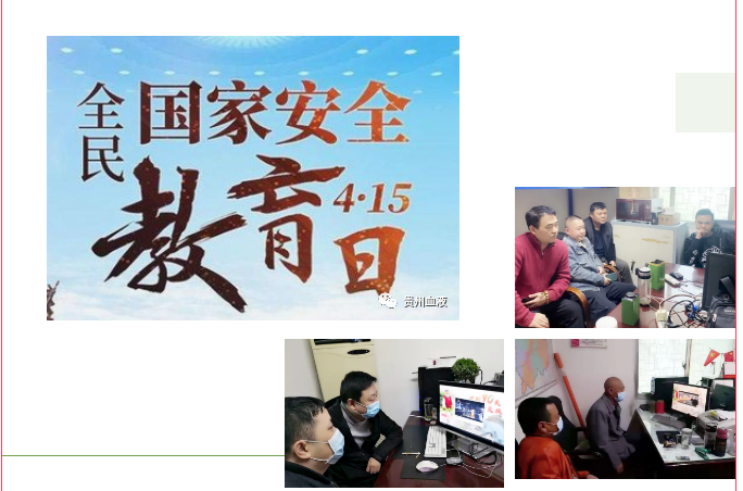 今年的活动主题为“践行总体国家安全观,统筹发展和安全,统筹传统安全和非传统安全,营造庆祝建党100周年良好氛围”。为推动国家安全教育深入开展,进一步增强国家安全意识,省血液中心各科室充分发挥主动性,结合工作实际掀起国家安全教育学习活动的热潮。