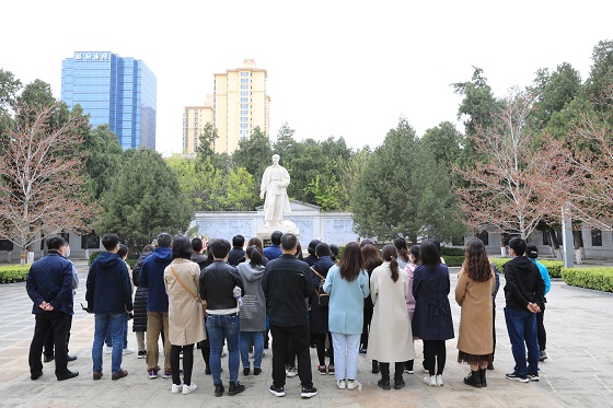党员同志怀着对烈士无限的崇敬踏入陵园,瞻仰参观了华北革命战争纪念馆,大家被大量的历史图片和实物所吸引,身临其境般地感受到抗日战争的惨烈和河北军民的铮铮铁骨。随后,大家步履缓慢、神色凝重的来到在华北烈士陵园白求恩墓前,第二党支部支部书记齐慧芳同志向大家讲述了白求恩“救死扶伤、甘于奉献”的精神,回顾他献身理想、投身革命的一生,大家纷纷向白求恩敬献花朵,表达自己的敬意和哀思。