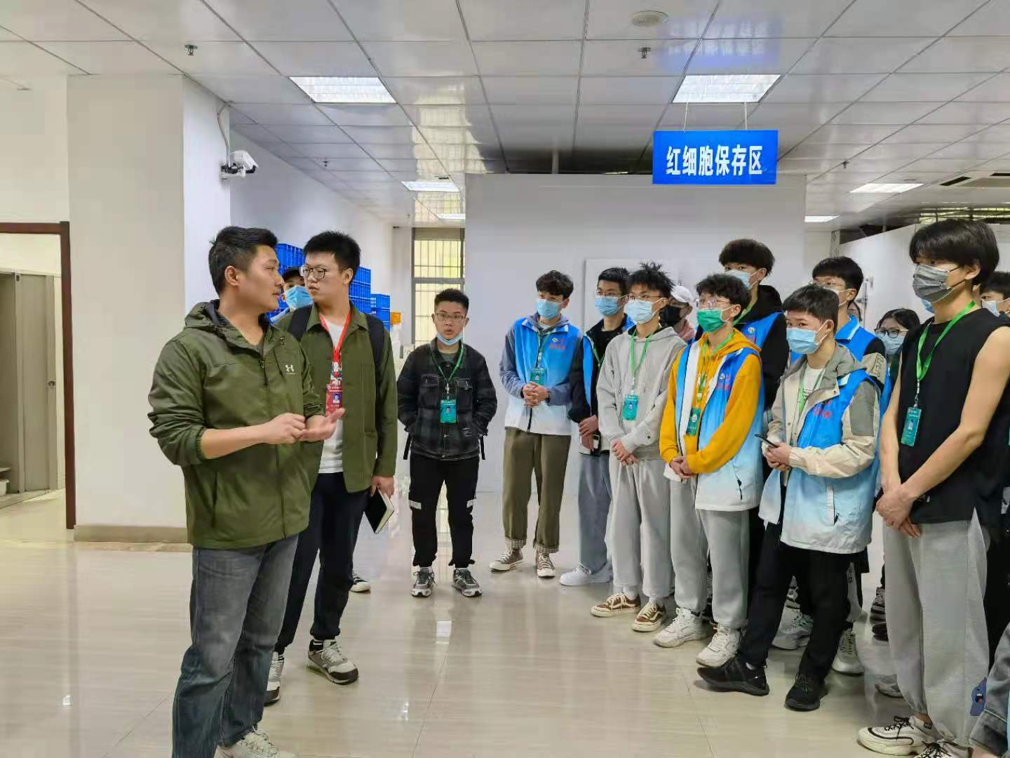 一早同学们就到达江西省血液中心,工作人员热情地接待了同学们,有专职老师讲解各种血液知识。同学们通过参观了无偿献血科普教育基地,依次参观了血液采集、检测、分离制备、储存等全过程。