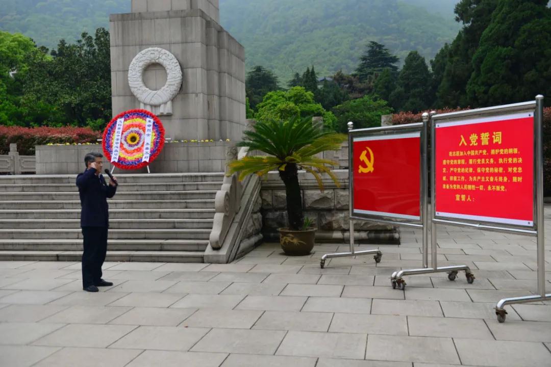 青松翠柏,掩埋烈士英魂;铮铮誓言,传承不朽精神。在庄严的革命烈士纪念碑前,党员代表向革命烈士敬献花圈,全体党员怀着崇敬的心情肃穆而立,向烈士默哀致敬,寄托哀思。随后,在站党委书记黄晓阳同志的领誓下,全体党员重温入党誓词,重问入党初心,瞻仰烈士纪念碑,缅怀革命先烈,表达无限敬仰和深切悼念。