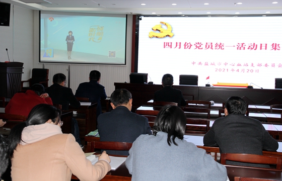 4月20日下午,盐城市中心血站党支部开展“党员统一活动日”集中学习活动。全站党员干部参加学习。